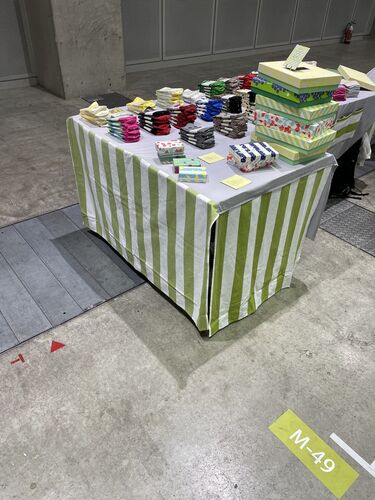 準備が終わりました。ヨコハマハンドメイド マルシェが始まります。久しぶりの横浜。多分 コロナの真っ只中以来です。参加するのも3回目 なので初の気持ちで挑みます。ブースの位置が 奥の壁側なので、思い切って壁のほうに向けて います。ただしこのやり方…